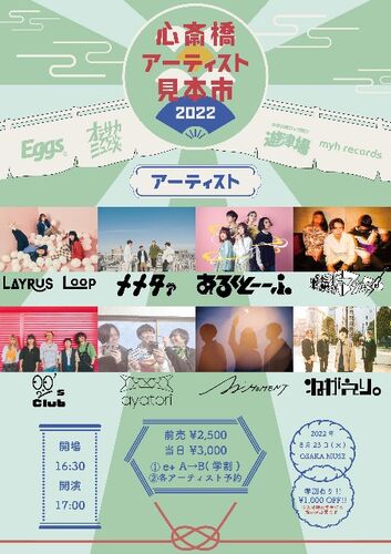固定ツイートにもしてますが、 8月23日(火)OSAKA MUSEにて、 「心斎橋アーティスト見本市」を開催します!このイベントは OSAKA MUSE、Eggs。myh records、遊津場、 ライブハウス、楽曲配信サイト、レーベル、ライター兼イベンター(的なよう分からん業界…